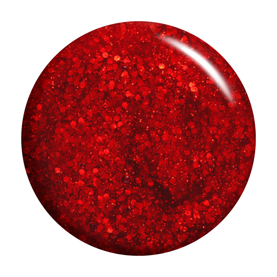 Classic red. Sparkles. Opaque. Cool undertone.