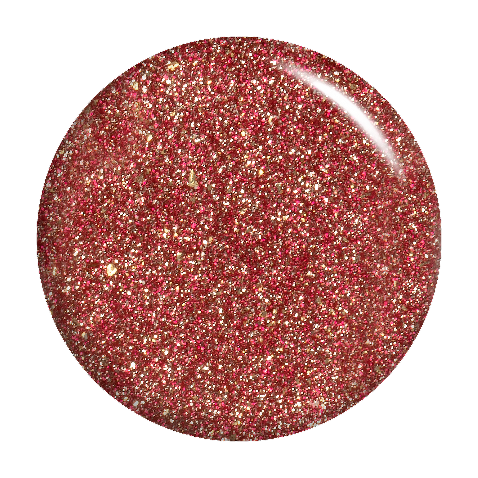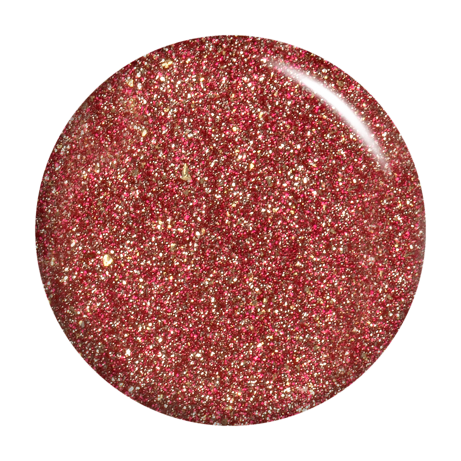 Ruby red. Metallic foil sparkle. Opaque. Cool undertone.